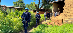 © MINUSCA – Des soldats de la paix de l’ONU patrouillent à Bouar, dans...