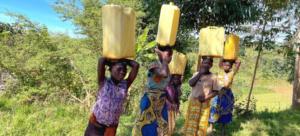 © UNICEF/Scott Moncrieff – Des jeunes filles transportent de l’eau depuis une source en...