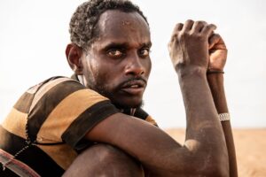 Omar, un migrant éthiopien, est pris en charge par l’unité mobile de l’OIM pour...